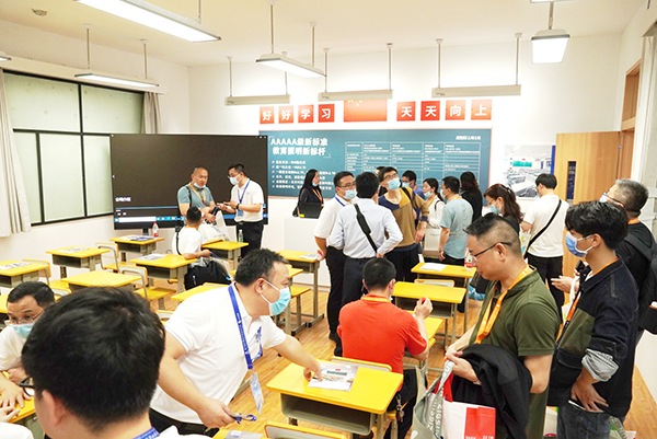 在(zài)展會現場,觀眾通過實物對比及(jí)燈光體(tǐ)驗,現場直接(jiē)感知色多多AV导航反射式發光技術教室燈和黑板燈的創新之處,以及AAAAA教室(shì)的(de)優越(yuè)健康光環境,現場屢次出現火(huǒ)爆場麵。