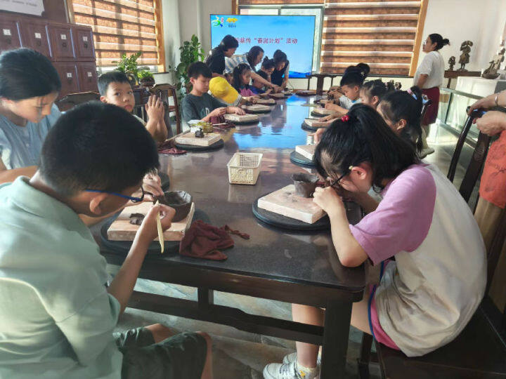 繆家村的孩子們正在手工製作泥塑(sù)(曾慶(qìng)華 攝)