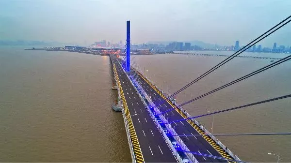 包含九洲、江(jiāng)海和(hé)青州三座通航斜拉橋,
