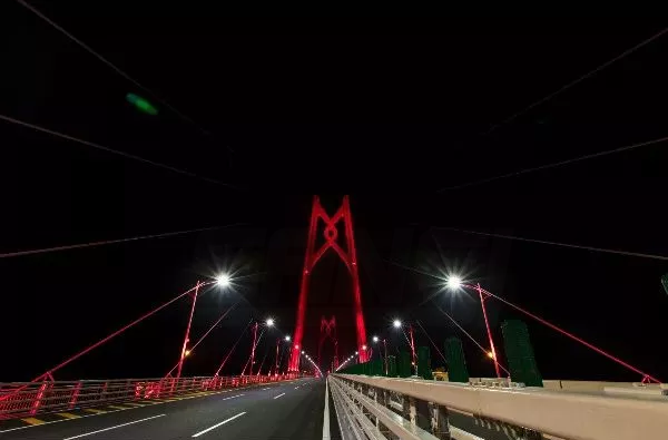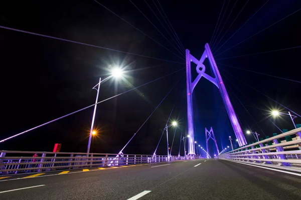 大橋夜景燈光采用日(rì)常和假期雙模(mó)式,日常模式以白色為主(zhǔ)色調呈現大橋本色;節假(jiǎ)日則通過變色LED燈實現五彩繽紛的變色(sè)效果(guǒ)。