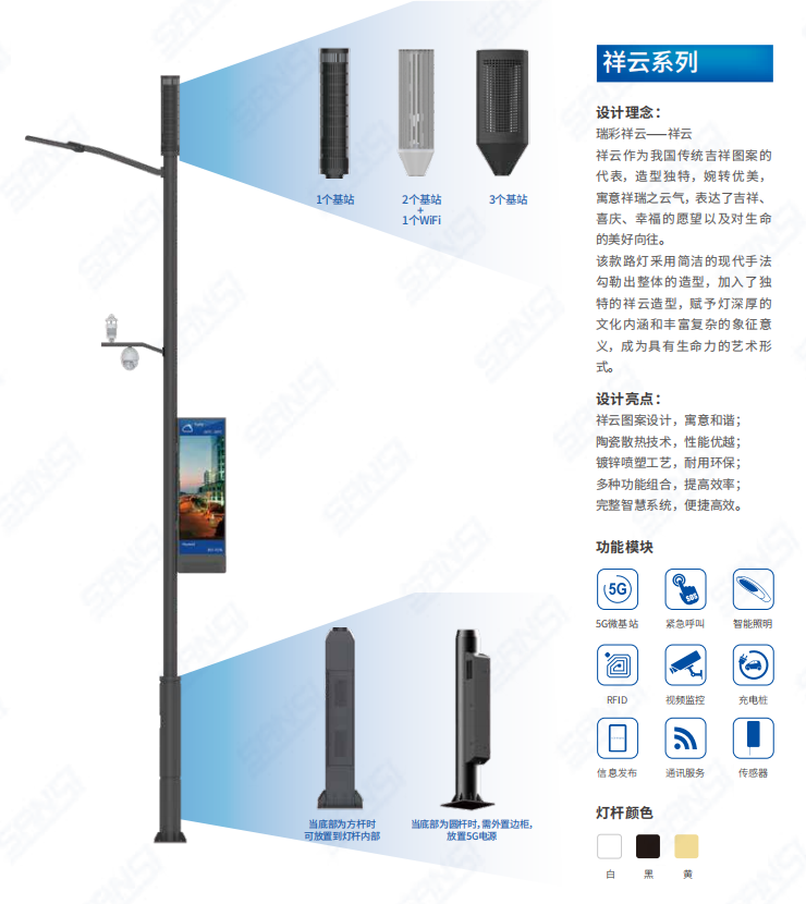 上海三(sān)思智慧路燈-祥雲係列(可搭載不同基站)