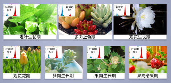 預設7種(zhǒng)植物光譜,多肉(ròu)生長/上色難題一燈搞定。