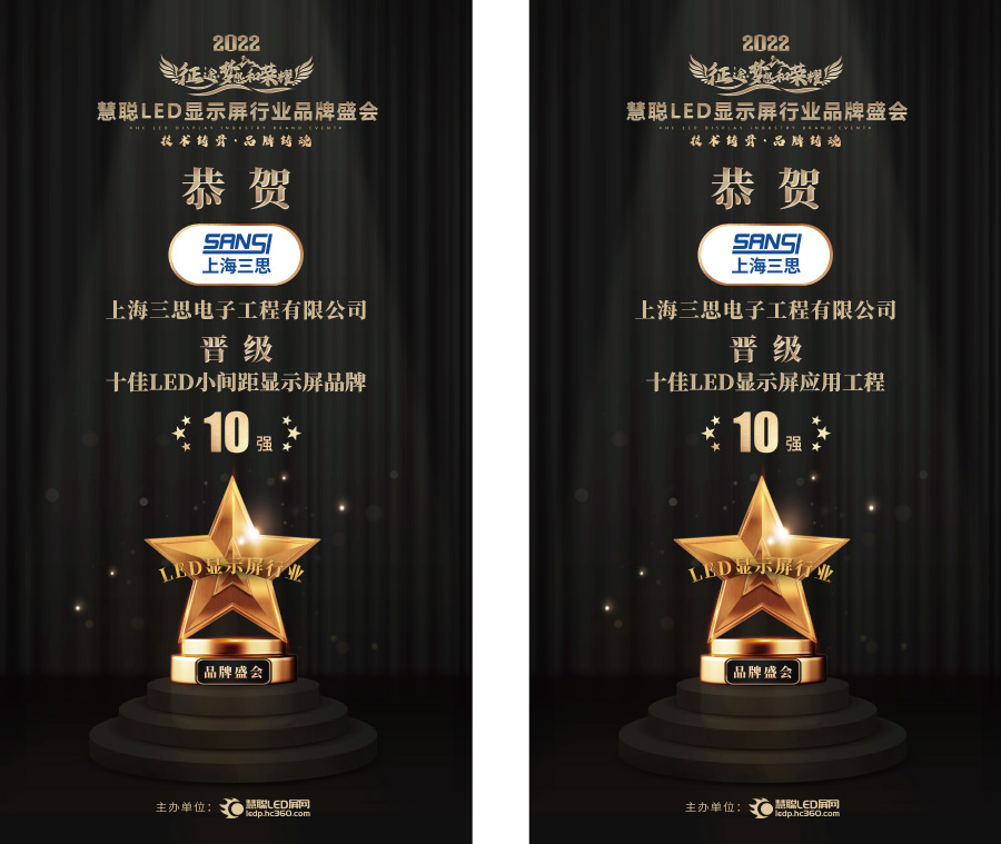 12月1日,“征途•夢想(xiǎng)和榮耀(yào)”2022年(nián)度慧聰LED顯示屏行業品牌盛(shèng)會十強(qiáng)榜(bǎng)單揭曉。經過長達三個月網絡投票(piào)、線上專(zhuān)家評(píng)審會,最終上海色多多AV导航在層層評選環節中過關斬將,摘得“十佳LED顯示(shì)屏應用工程”桂冠及“十佳LED小間距(jù)顯示屏(píng)品牌”前三!
