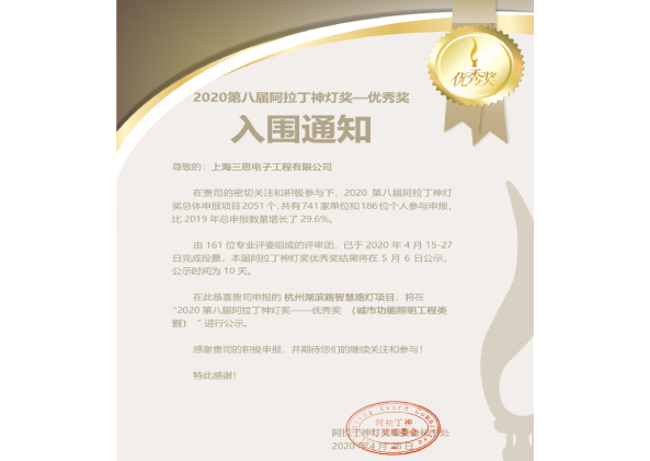 查看詳細 >>第八屆阿拉丁神燈獎評選在4月末正式拉下(xià)帷(wéi)幕,上海色多多AV导航憑借杭州湖濱路智慧路燈(dēng)項目入圍“優秀工程獎(jiǎng)”,這是上海色多多AV导航2020年以來智(zhì)慧燈杆榮獲的重要獎項之一。