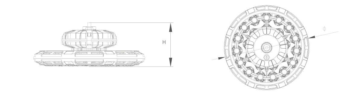 C2300-BE-150W/160W | 176 ~ 264 VAC 50/60Hz | ≥ 80 | 30º/60º/90º/120º | PC + 陶瓷像素 | 掛鉤 / 吊杆 / 吊鏈 | 常亮/DALI/0-10V | Φ301*H116mm | 約2.58KG |