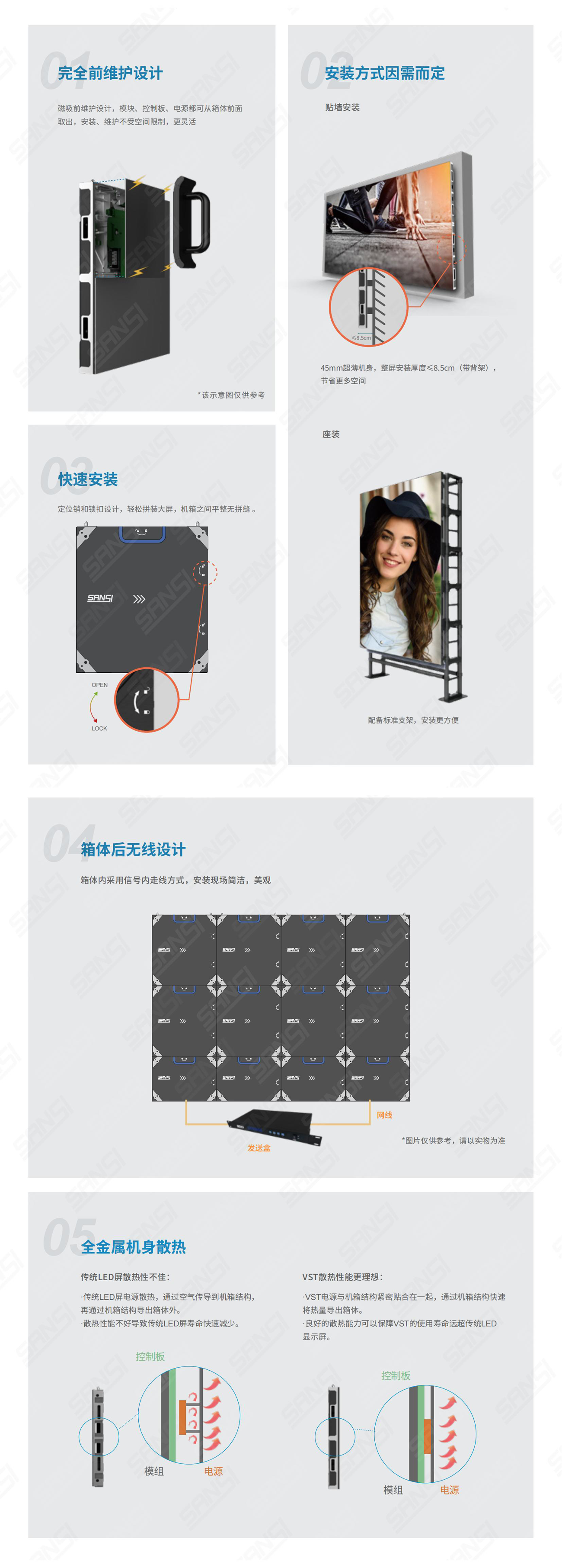 VST係列秉承了色多多AV导航產品一貫的高穩定性和出(chū)色的顯示效果,是一款專業級前維護小間距顯示產品。