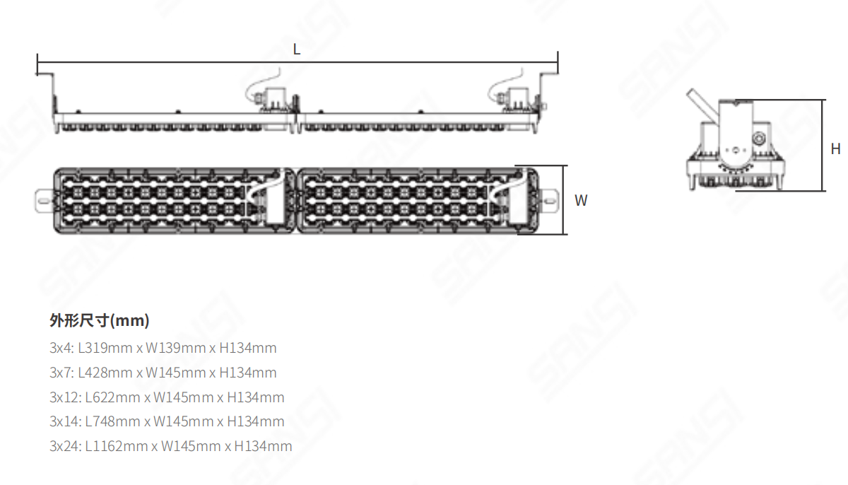 不調光/RS485/PWM/0~10V/0~5V/PLC | 鋁(lǚ)本(běn)色RAL9006 | L70 125000小時(shí)(環境溫度在25℃)* | -40℃~+55℃ |